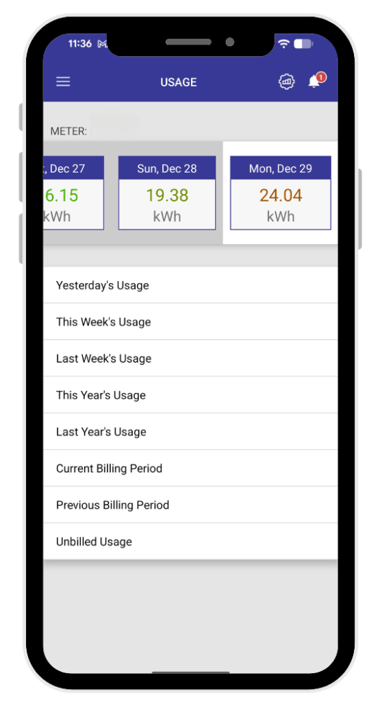 You can track your electricity consumption, compare it to past billing periods, and even see what your average usage is on a particular day of the week.